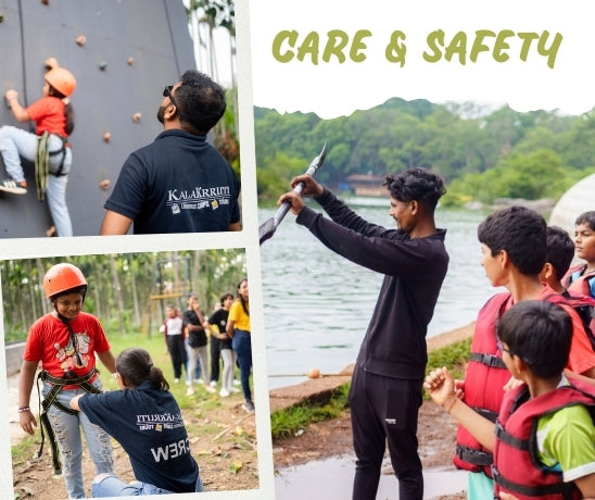 20. Adventure activities, Water Rides and fun rides are done at participants risk. During entire Camp/Tour and during Adventure Activities, Water Rides, Fun Rides utmost care and safety will be taken by the experts with proper equipmentโs. In any case of equipment failure, human mistake or by another reason what so ever or during travelling if accident occurs and it causes any injury, physical damage, loss of life to participants, trainer or volunteer than Kalakrruti and its management will not be responsible for any legal or monetary issue.